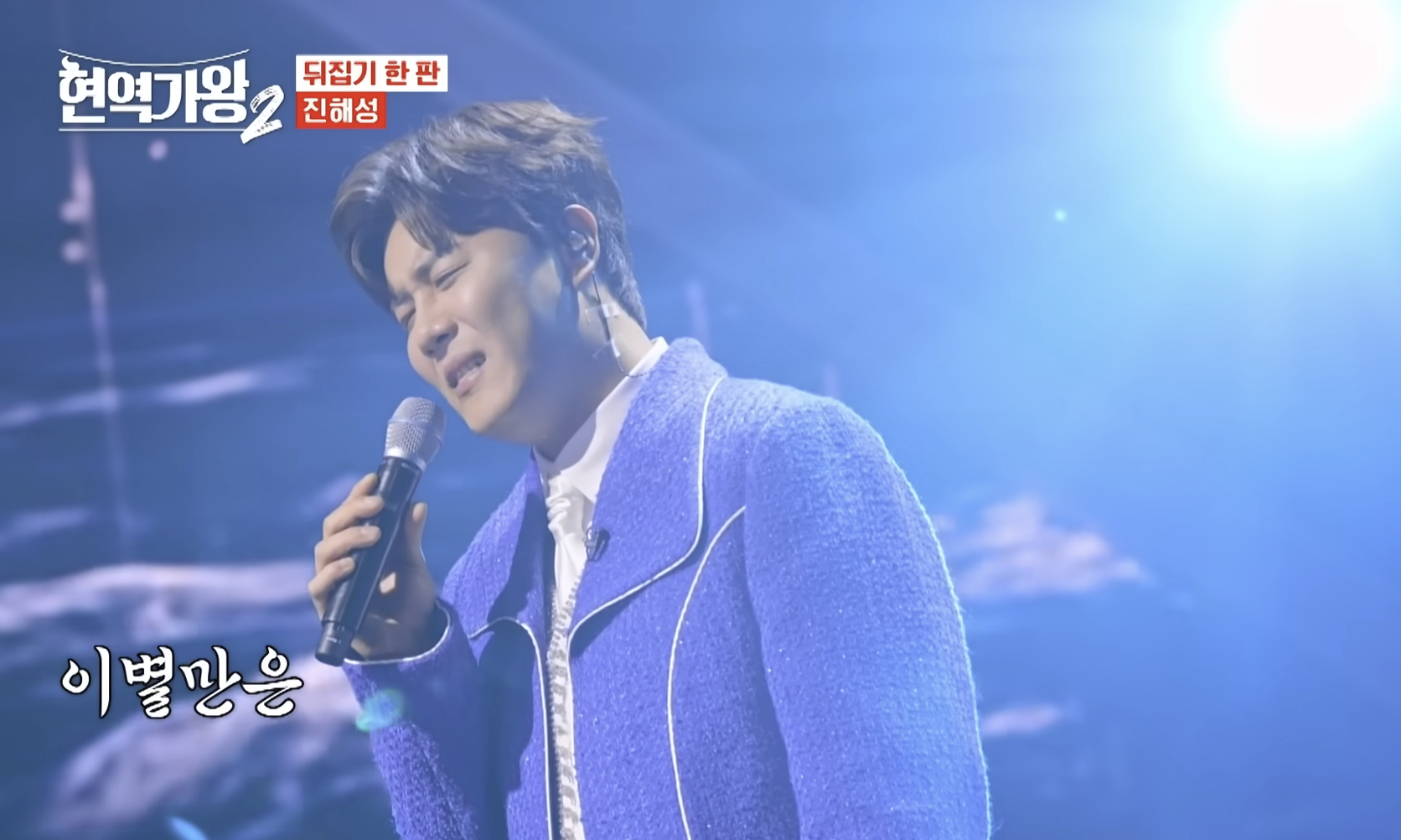 진해성은 ‘울며 헤진 부산항’를 선곡해 전매특허 꺾기를 선보이며 마스터들로부터 호평을 받았습니다. 그러나 강력한 경쟁자들 사이에서 상대적으로 점수가 낮아 방출 후보로 내려갔습니다. 다행히 패자부활전에서 극적인 승리를 거두며 준결승에 진출했습니다.