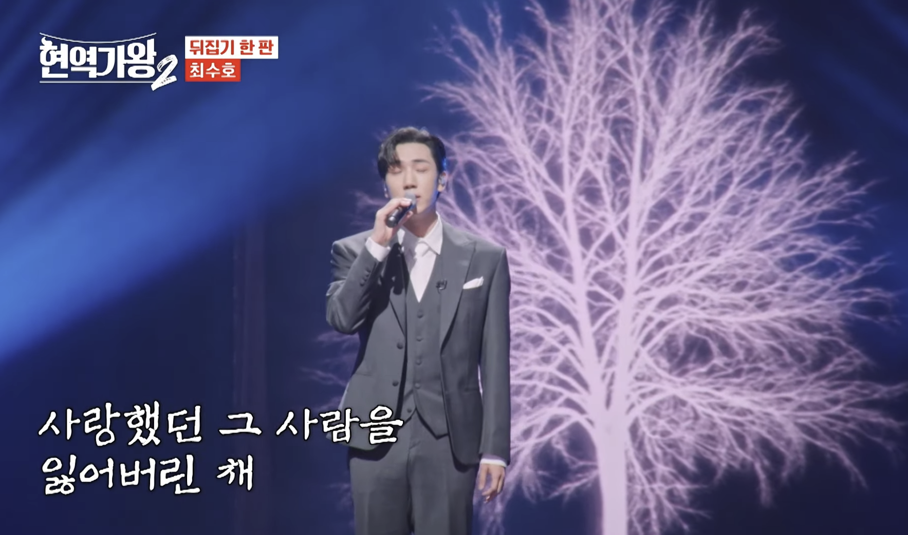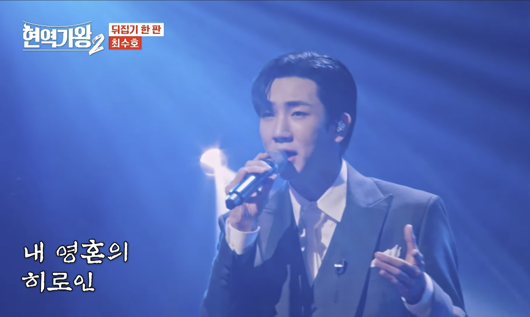 6위 최수호는 ‘내 영혼의 히로인’을 통해 국악적 요소를 접목한 독창적인 무대를 선보이며 창의성과 음악적 실험정신을 보여줬습니다. 전통과 현대를 결합한 새로운 시도를 했다는 점에서 마스터들의 호평을 받았고, 신선한 음악적 해석이 돋보였습니다.