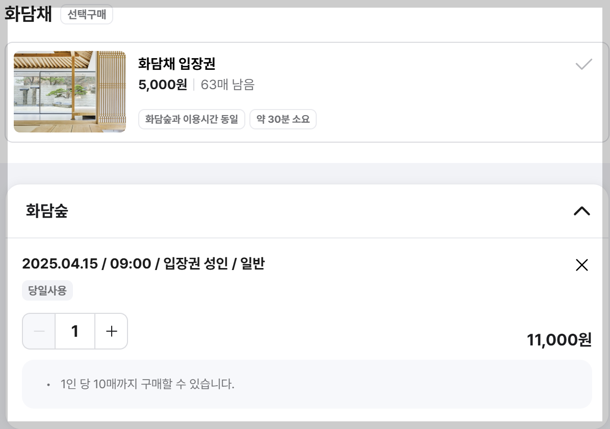 - 입장 가능 시간: 08:30 ~ 18:00 (입장 마감 17:00)