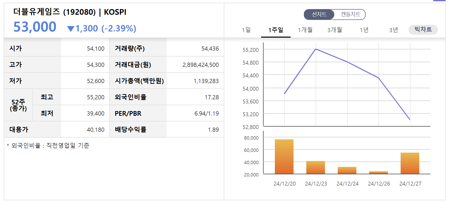더블유게임즈의 주가는 2024년 12월 기준 약 50,000원으로, 목표 주가 68,000원에 대비해 상승 여력이 약 35%로 평가되고 있습니다. 강달러 환경과 유럽 시장 확장이 주요 성장 동력으로 작용하고 있습니다.