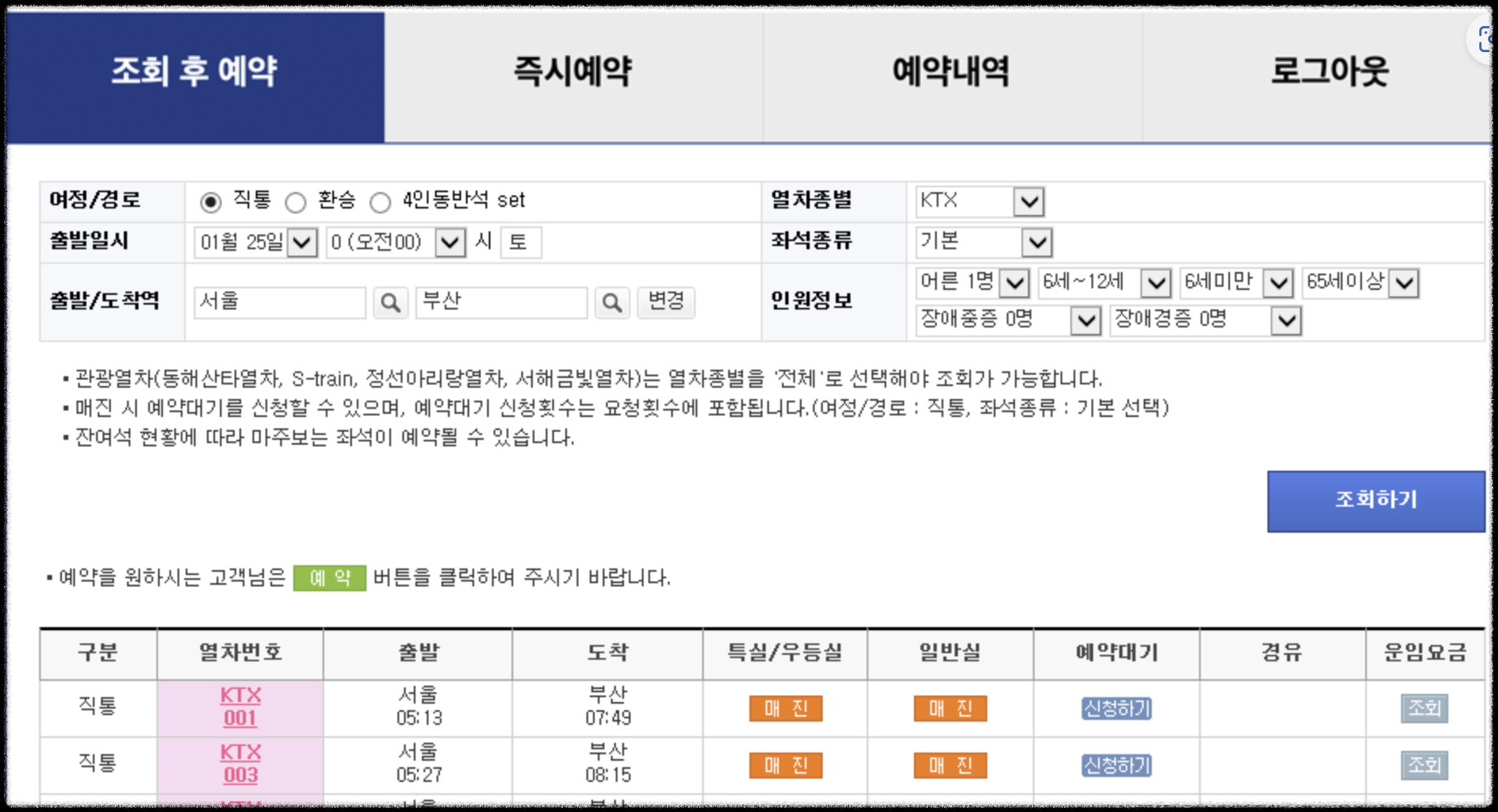 📌 TIP: 인기 노선(KTX 서울-부산, 서울-광주 등)은 예매 시작 10분 내 매진될 가능성이 높으니, 준비를 철저히 하세요.
