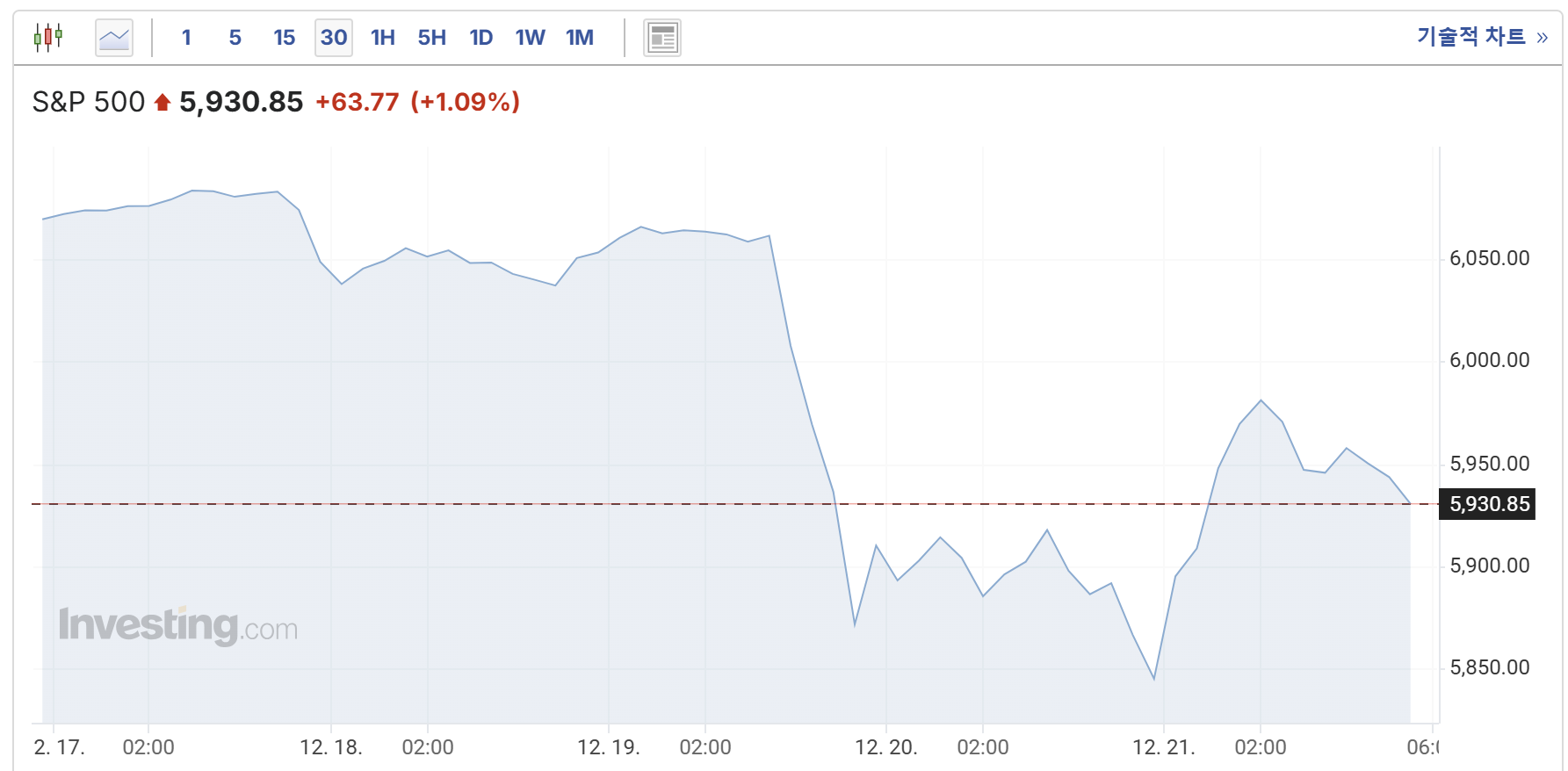 | 일중 최저점 | 5,980.30 포인트 |